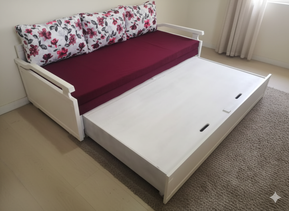 Materials used: Mahogany wood and commercial ply wood, 32 density PU foam and Melamine Matt finish.