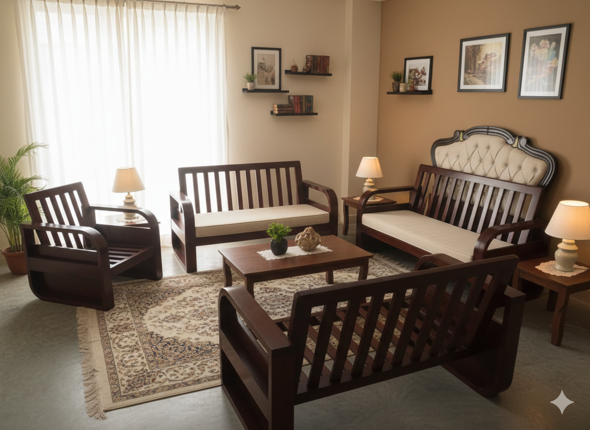 Materials used: Mahogany wood, 32 density and 40 density PU foam and Melamine Matt finish.